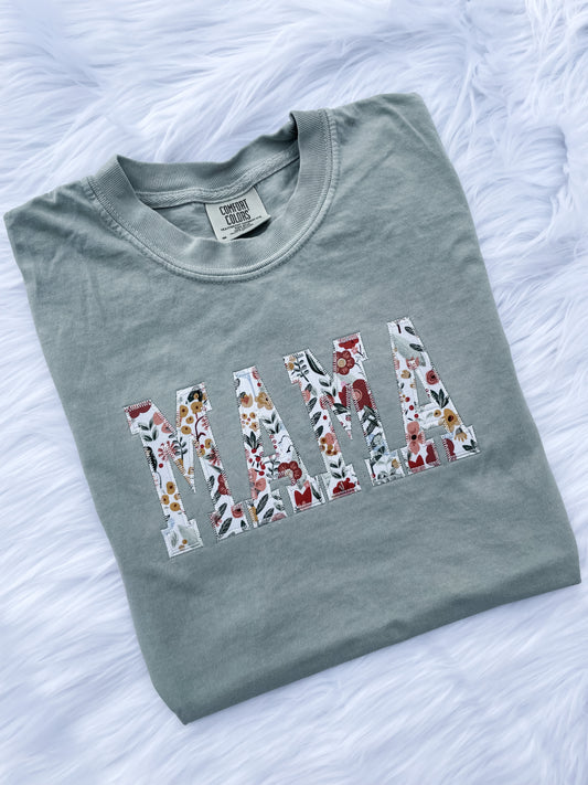 Mama Embroidered Floral Applique Tee
