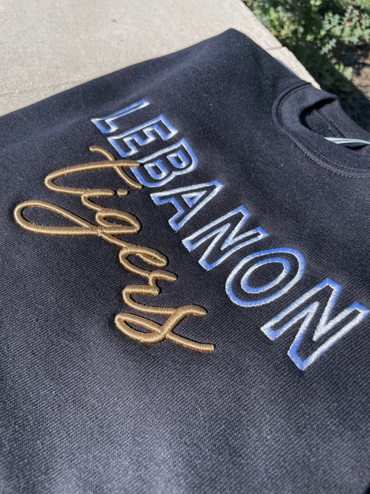 Lebanon Tigers Puff Embroidered Crewneck Sweatshirt