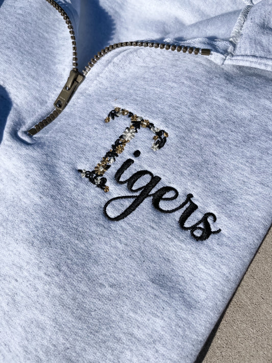 Floral Lebanon Tigers Embroidered Quarter Zip Sweatshirt
